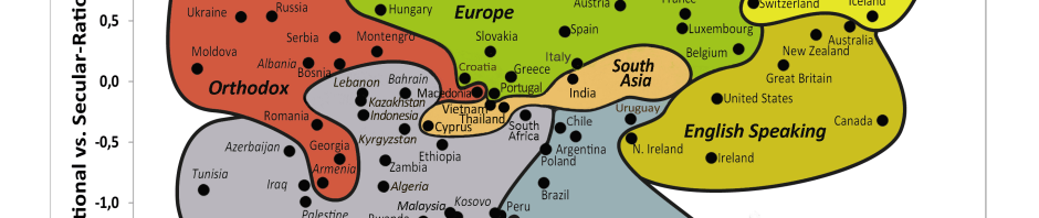 Comparing the top 15 economic performers in the world with the World Value Survey, we can conclude that almost half of the economic top performers are from ‘Protestant Europe’ (Switzerland, Netherlands, Germany, Sweden, Finland, Norway, Denmark), one third are from ‘English speaking’ group (United States, United Kingdom, New Zealand, Canada) and the remaining countries (Singapore (not in WVS survey), Japan, Hong Kong and Taiwan) are in the ‘Confucian’ group. All the non-Confucian countries score high on self-expression values, while the Protestant Europe group and the Confucian countries score high on rational values. So clearly the ‘protestant work ethic’ is an integral part of the Scandinavian character, but could it also mean that rational and self–expression values are pre-requisites for a country’s economy being competitive in our global economy? Probably.